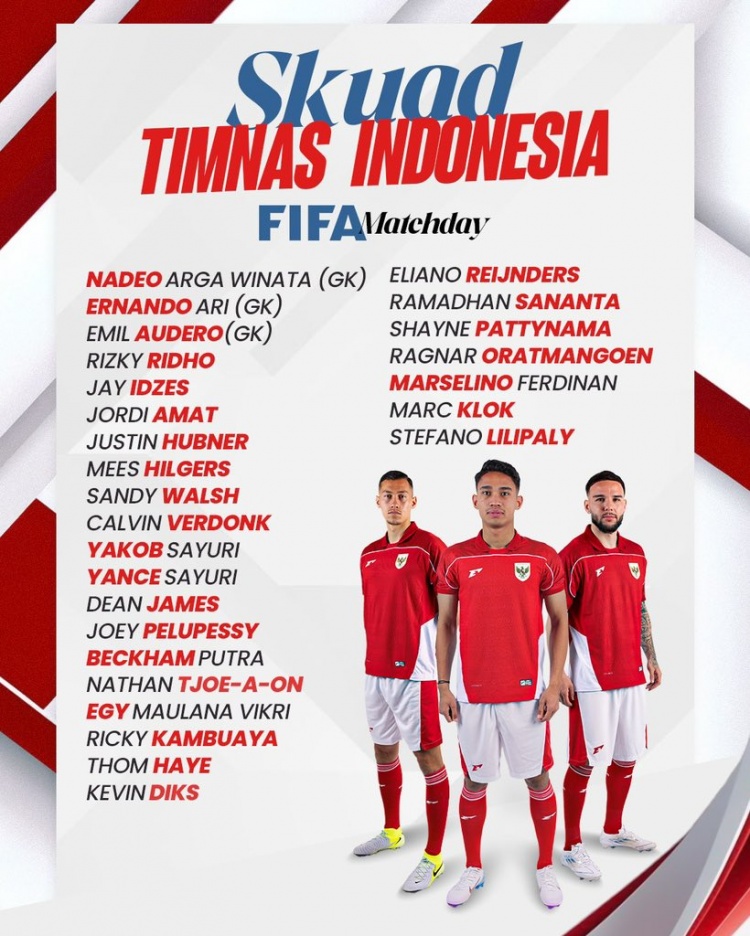 8月21日,印度尼西亚足协主席托希尔通过社交媒体公布了国家队最新一期集训名单。根据赛程安排,印尼队将在9月国际比赛日与科威特及黎巴嫩进行热身赛,随后于10月出战世界杯预选赛亚洲区附加赛(第四轮赛事)。
